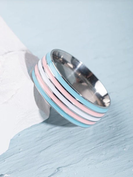 Blue White Pink Ombre Band Transgender Pride Flag Ring Lgbt Etsy